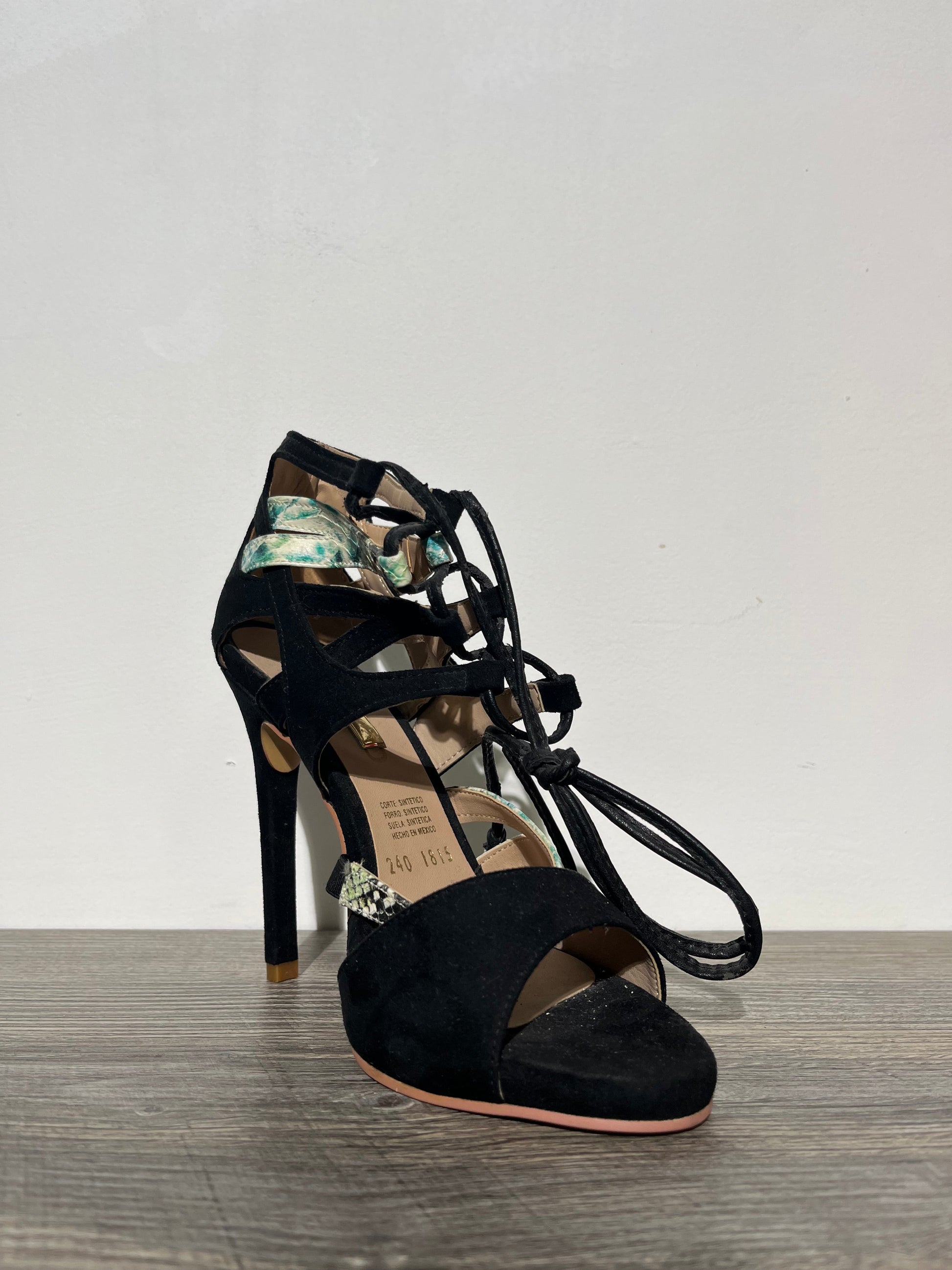 Tacones negro con cinta con diseño – Alma Shoes